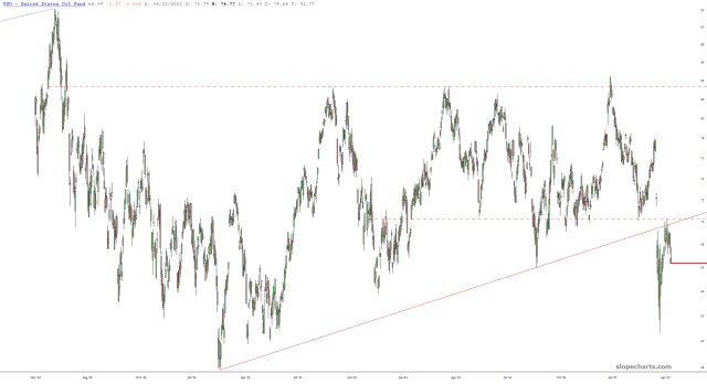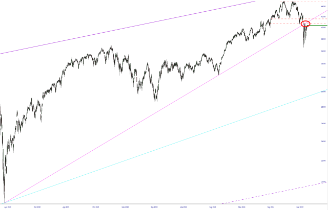 No, this isn’t some weird self-deprecating post. I’ve assigned that role to Treasure Hunter in the comments section. I simply want to point out what a fundamentally broken market the Dow 30 is now, having slashed its trendline and persistently traded below it ever since such a slashing.