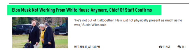 Oh, and if I may toot a tiny tuba before ending this post – – I was adamant that Elon would weary of government work “before April was over” (I’ve said it repeatedly since the whole DOGE thing bubbled into existence half a year ago). It was a close call, but I’d like to take a victory lap on this one.