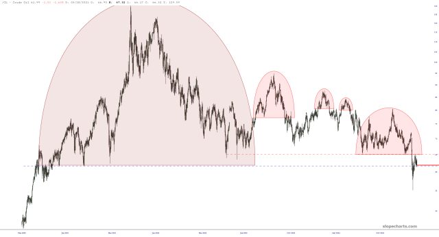 What I would point out is something that I haven’t seen mentioned anywhere else, which is that crude oil is beneath the Mother Of All Overhead Supply Zones. This sucker spans back for years and years, and I think is illustrative of the absolutely vacuum the global economy is about to enter. The popular notion is that commodities are undervalued and ready to rock. I have the diametrically opposed viewpoint.