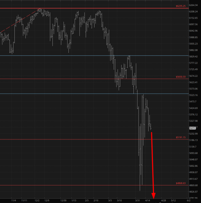 Following the three-day weekend, equity futures gapped lower immediately, and barring some surprising news (perhaps a larger, even brighter white surrender flag above the White House), I suspect it’ll be more bear fun in the morning.