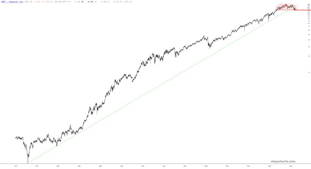Longer-term, you can see this top in context, as well as the fact that the stock has broken a lifetime (multi-decade) uptrend.