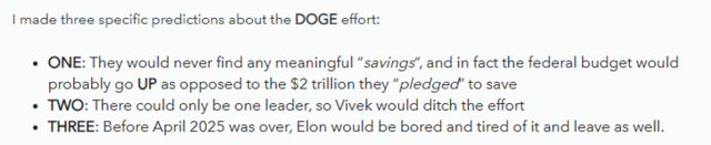 Well, I’d say I’m 3 for 3. Allow me to explain. Here are the predictions I made in 2024, which I reminded folks about on Inauguration Day: