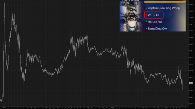Below is the /RTY from the point when the U.S. surrendered to China (left side) leading to an historic and explosive rally on Monday. Fast-forward to today, and what do we see? A return to the same price BEFORE the announcement early on Monday.