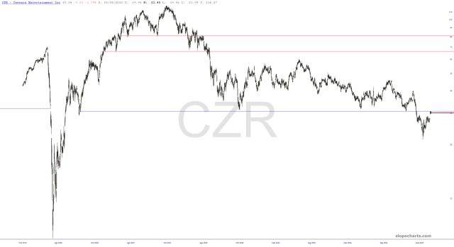In spite of the acrid stench of bull arrogance and conceit wafting through the corridors of my beloved Slope, I have been steadfast in my positioning. The only positions that were closed (by way of tight stops) were XLU and MDLZ, both of which were defensive positions, and both closed with good profits. My phalanx of 24 shorts remains in place, and here are some charts which I find to be especially intriguing as swing setups. Go nuts.