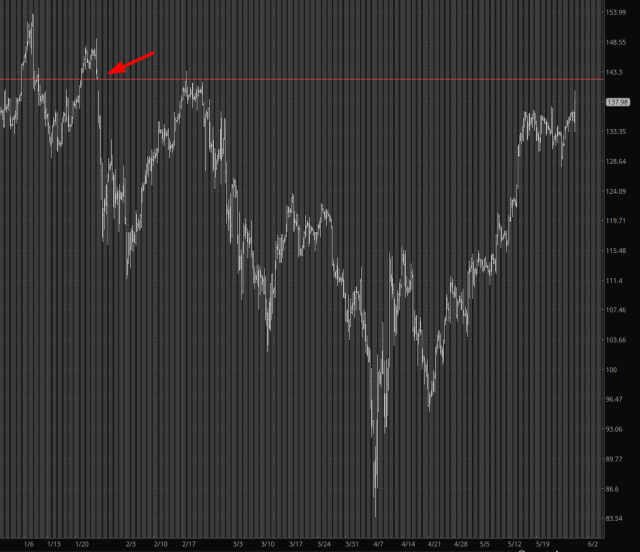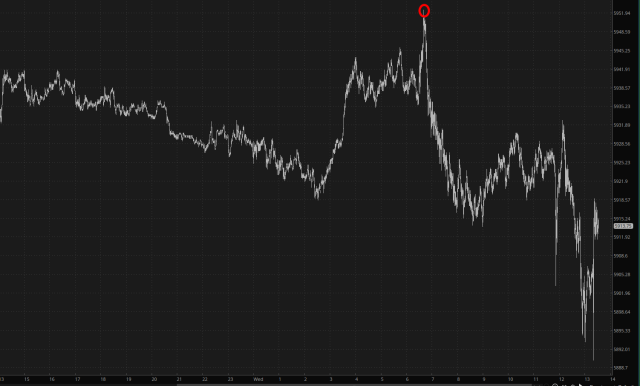 Sure, it would have been nice to see this sucker swoon, but God knows my portfolio isn’t constructed to depend on what NVDA does. Indeed, my tech exposure is vanishingly small. I would also note that, for once, the bulls got a dose of their own medicine and got to have the high-water mark of the day take place at the opening bell, only to see the /ES grind lower for hours afterward.