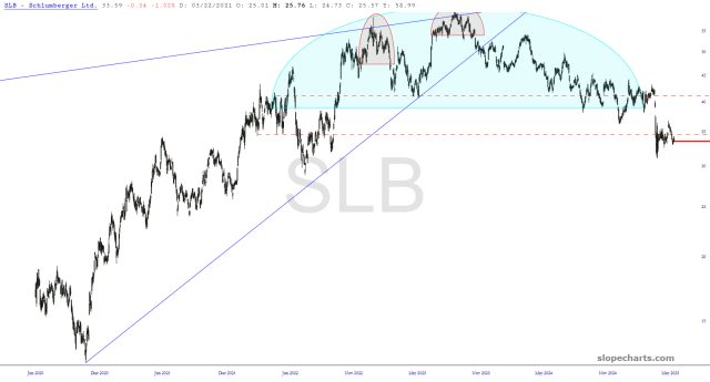 Most of all, though, I remain about energy, energy, energy. Schlumberger continues to break down nicely, which helped contribute to an overall good day for me.