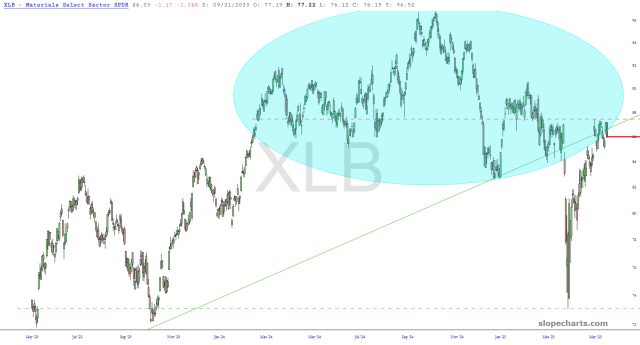 Relatedly, the materials ETF still has a pitch-perfect diamond reversal pattern.