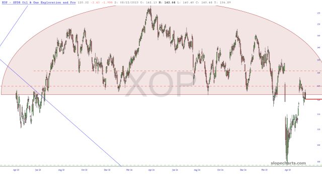 And, of course, our dear friend, the Oil Producers fund XOP. I’ve tightened up my stop across the board on all these, yielding total risk of only 1.67% for my entire portfolio.