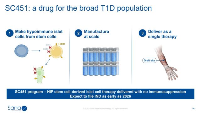 The islet cells used in that trial came from a cadaveric donor. Sana’s goal is to scale this breakthrough using stem cell–derived islets—which contain insulin-producing beta cells—that can be manufactured in large quantities and delivered off the shelf. The result would be a one-time treatment that could eliminate the need for insulin, blood sugar monitoring, and other diabetes therapies.