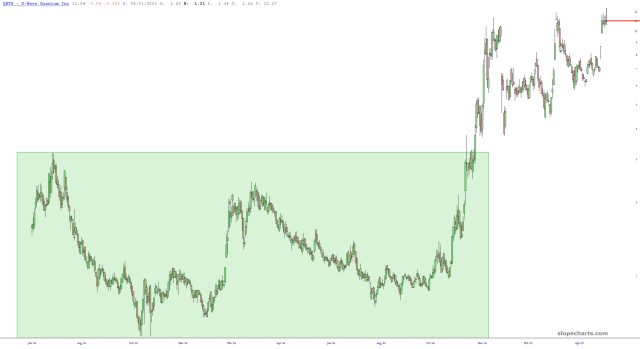 The only “quantum” stock that’s managed to fall is, ironically, the one with the most awesome ticker symbol – QNTM. However, as I discussed earlier this year when the stock was soaring based on nothing more than its name, the investing public realized this company, in fact, makes bio-lab testing equipment and has absolutely nothing to do with, ya know, Quantum Computing.
