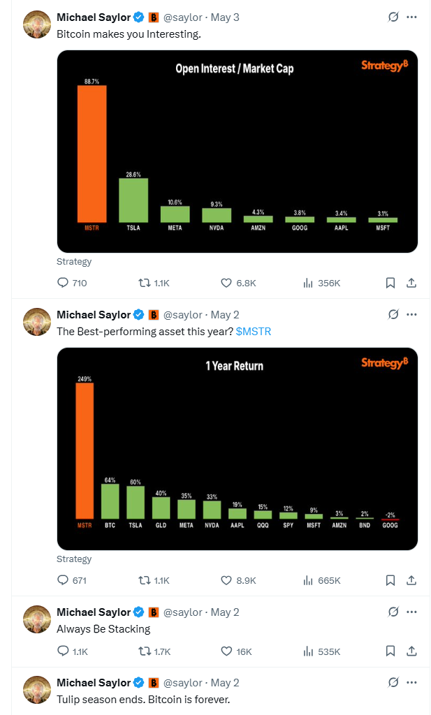 Fittingly, this coincides perfectly with Michael Saylor cranking up his cocksure arrogance to the proverbial “11” as he beats the drum to get others to join his cult.