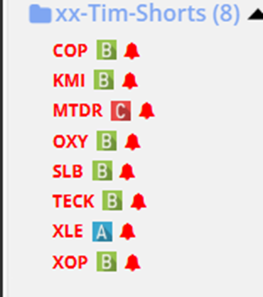 In any event, by way of these watch lists, I keep my Bear Pen of shorting opportunities, and that list has 25 components. When I set it to show Unique Symbols, it displays the “leftovers” of symbols in the Bear Pen which are not also in my Tim Shorts list. That is to say, it reveals what opportunities I am considering that have not become trades yet.