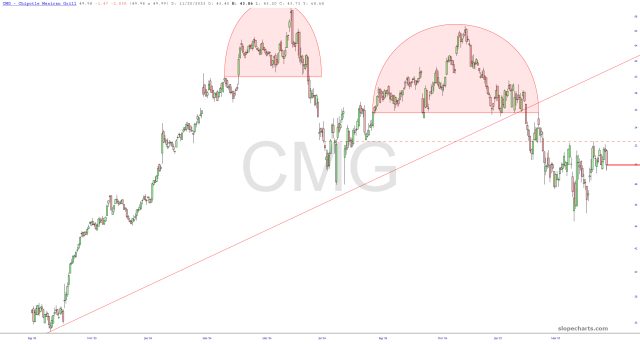 Out of the thirty equities in my Bear Pen, fourteen of them are not in position for one reason or another. They are still worth watching closely, and I’m zoomed in on what I consider to be the most relevant recent portions of each chart. I’ve also watermarked each one with its ticker.