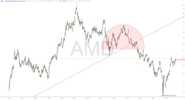 I have entered into four new short positions this morning, focused on semiconductors. In each case, my stop-loss is set where I’ve drawn the dashed red line (typically a price gap or the recent “lower high” for the stock.