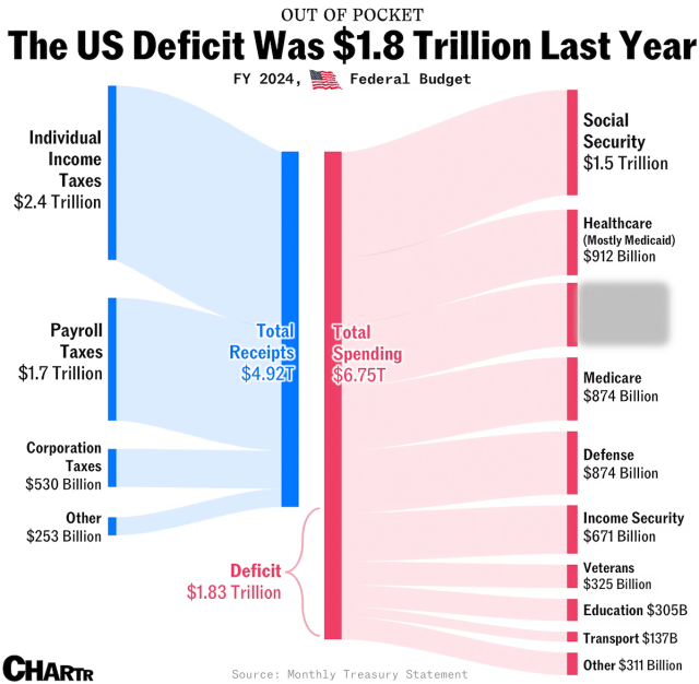 Just to be clear, given the data below, they want to spend MORE on the military and CUT taxes. But I’m sure when Lauren Sanchez has a few extra hundred million each quarter, she’ll plow it right back into the middle-class economy, pay her taxes, and we’ll all be the better for it.