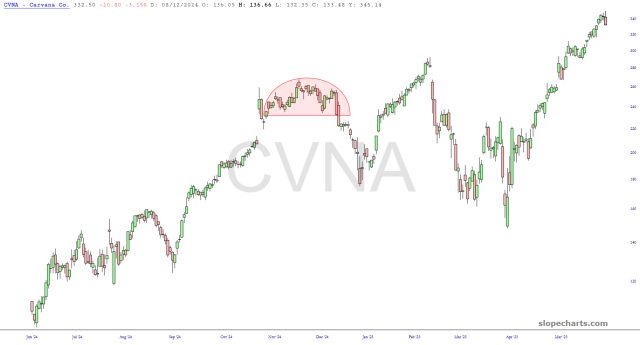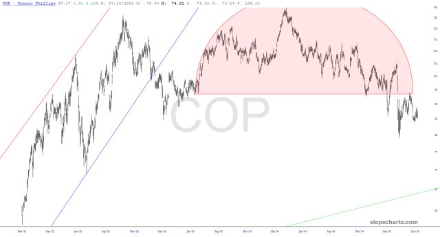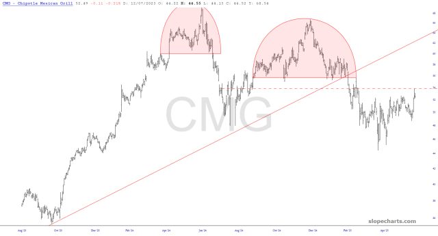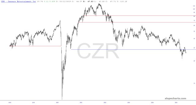 Preface to all three parts: there are thirty charts in my Bear Pen watch list. I am presently short only eight of them (the other four shorts are ETFs), but I wanted to share the entire list with you this weekend. I have zoomed in to the most recent portions of the chart that I believe are most relevant.