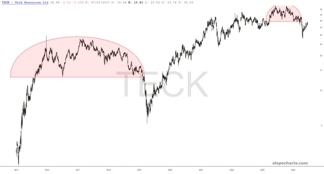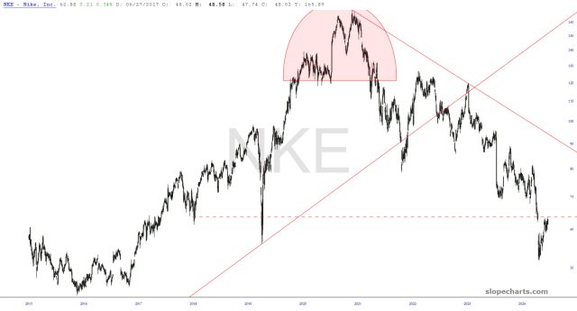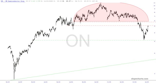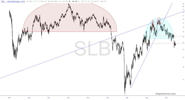 Preface to all three parts: there are thirty charts in my Bear Pen watch list. I am presently short only eight of them (the other four shorts are ETFs), but I wanted to share the entire list with you this weekend. I have zoomed in to the most recent portions of the chart that I believe are most relevant.
