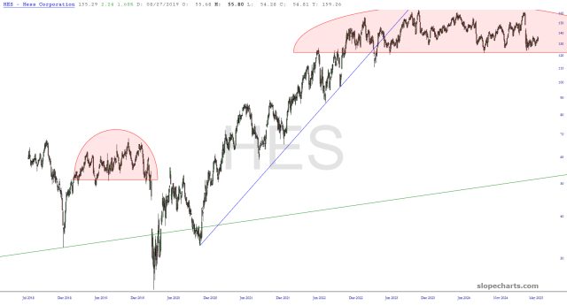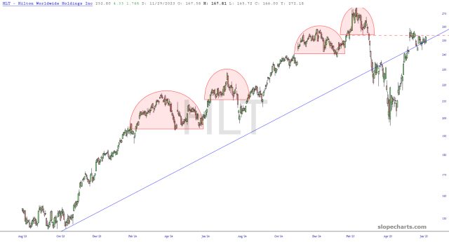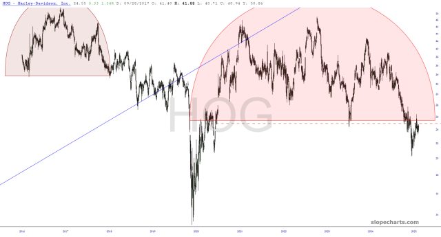 Preface to all three parts: there are thirty charts in my Bear Pen watch list. I am presently short only eight of them (the other four shorts are ETFs), but I wanted to share the entire list with you this weekend. I have zoomed in to the most recent portions of the chart that I believe are most relevant.