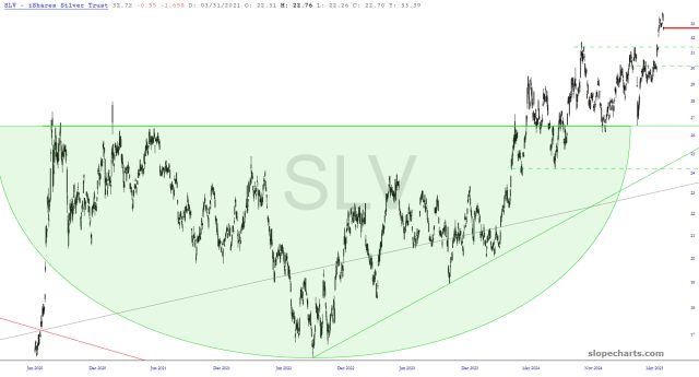 I would love to buy more silver, but I’d prefer doing so at lower prices. Let’s see if it can find support at the dashed green line where the gap is, although it may have to get beaten up worse than that, particularly if the dollar continues to strengthen.