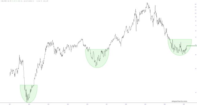 This new chart of palladium divided by the US dollar index illustrates one of the reasons I think palladium is headed for a long-term bull market.