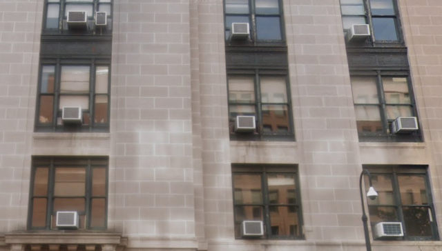 What I see is a wheezing, aged, rusty, tired old hulk of a mid-20th century construction project, pitifully adorned with hundreds of room air conditioners which probably consume about five times more power than a modern, centrally-air-conditioned building would.