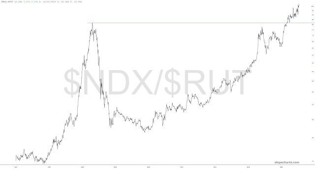 In the least-surprising news of the day, the NASDAQ stocks have utterly overpowered the small caps, and continuing to push to never-before-seen levels