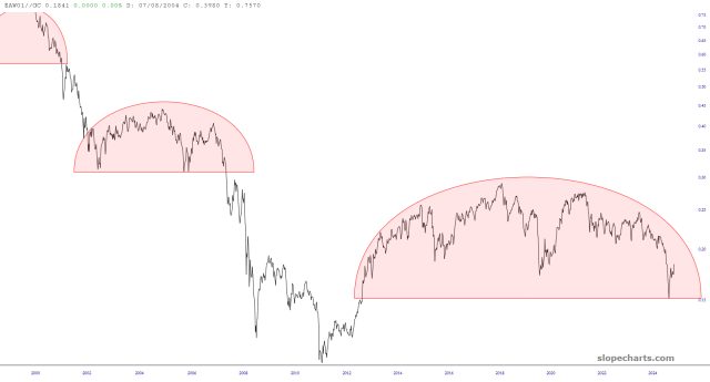 I’ve gone through my entire ratio chart list (that is, those charts compromised of two or more symbols to create a unique presentation of some financial information) and wanted to share the most interesting ones with you.