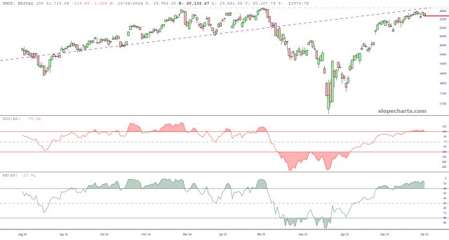 Having endured the insane counter-trend rally that began on April 7th and ended (God willing) last Wednesday, I believe it is finally time for things to take a meaningful turn lower. By the end of today, it should be clear if the bears still have a chance at this or not. Click on any chart for a screen-filling version.
