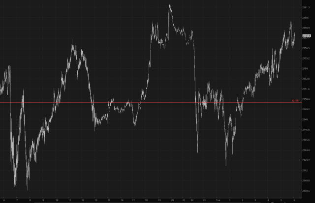 At the moment, though, the market doesn’t really know what to do with itself. One look at the /RTY over the past day illustrates a total lack of conviction.