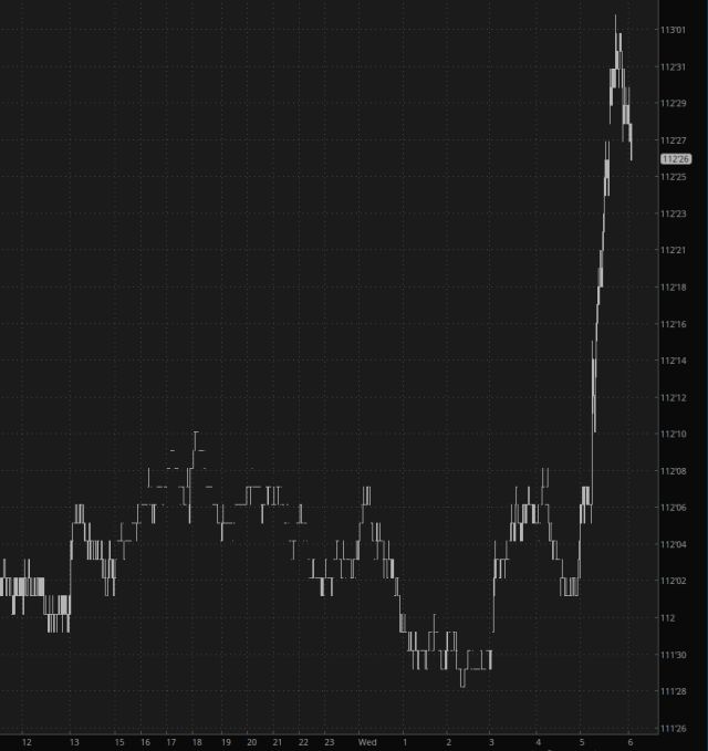 As such, bonds are spiking higher, as the market assumes a dying jobs market gives Powell license to drop interest rates in an attempt to poke a stick at a dying economy. The way AI is destroying jobs, interest rates could be negative ten percent, and it’s not going to matter.