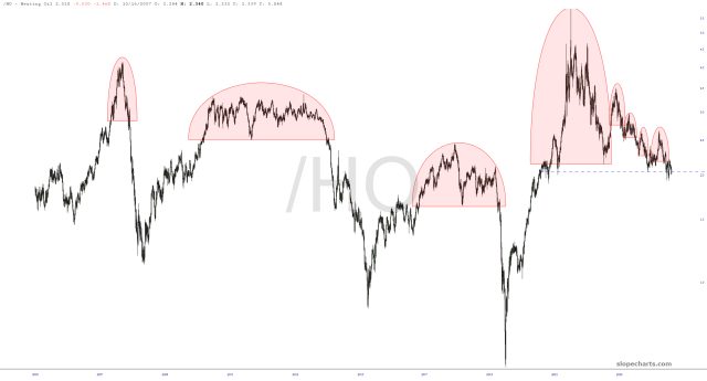 The Japanese Nikkei is stubborn, but over the past few years, the topping pattern has been getting hammered out. I’m surprised, given the country’s dreadful demographic and economic situation, that it is managing to sustain itself as well as it has.