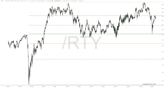 The S&P 500 futures aren’t exactly playing nice with their Fibonacci levels, but we’ve stalled out in the middle of the highest range, and there’s still a modest portion of overhead supply that will hopefully keep the bulls at bay. The counter-trend rally from April 7th forward has been a brutal one!