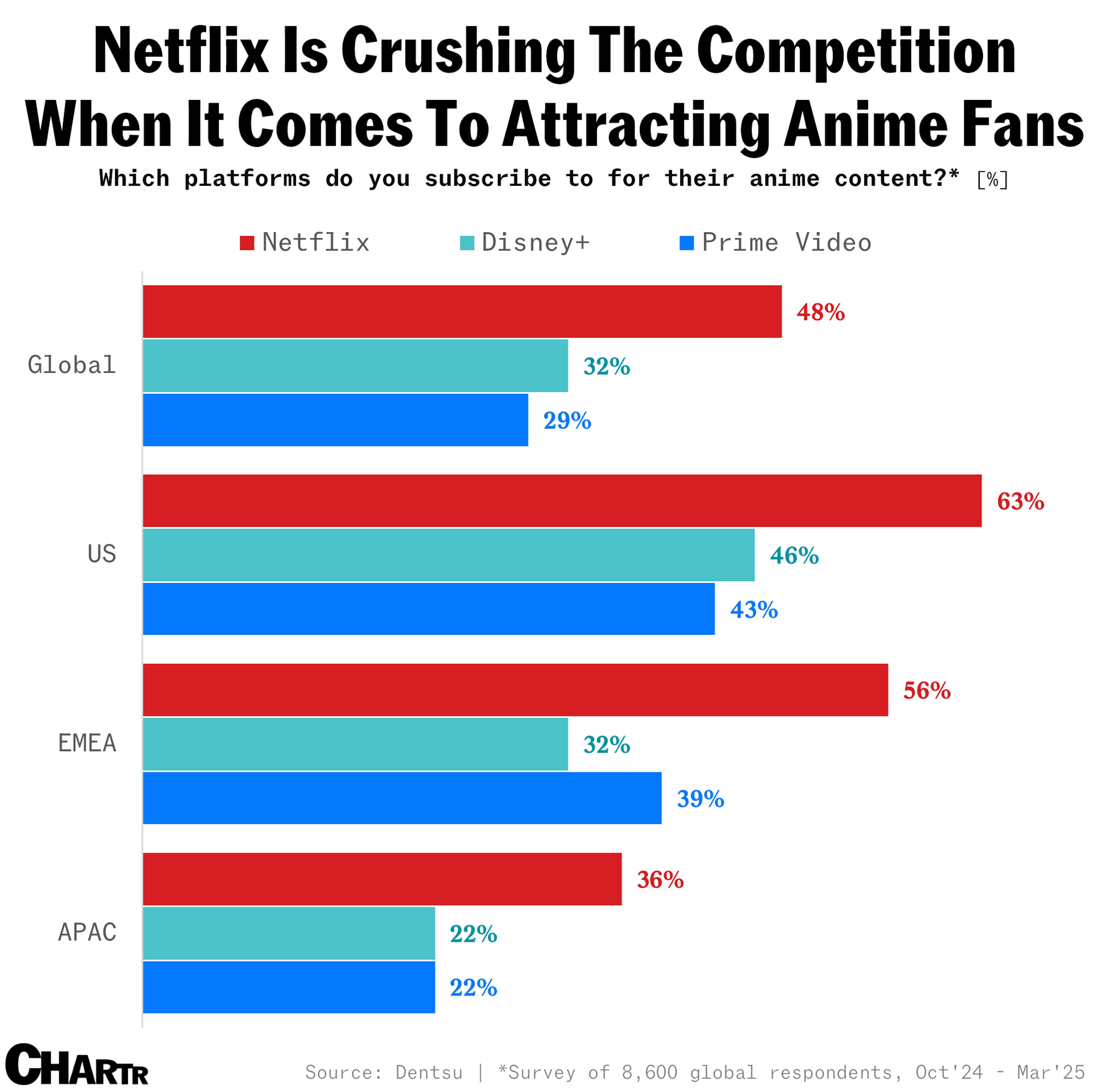 Since I’m not a sexually frustrated Japanese male with severe arrested development issues, I’ve never really thought about anime, but apparently, it’s a big factor in choosing a streaming platform.