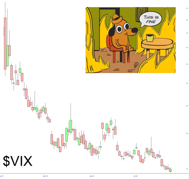 The VIX is a mere one-fourth what it was on the heels of the performative Liberation Day nonsense. One-fourth! Just as it would be foolhardy to be shorting with a VIX at 60, likewise it would be unhinged to think what a super-duper time this is to be going long. The fear is gone when the opportunity is as well.