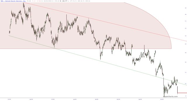 Wow, United Parcel Service (UPS) is worth less than HALF its peak value. Yet another business Amazon has destroyed.