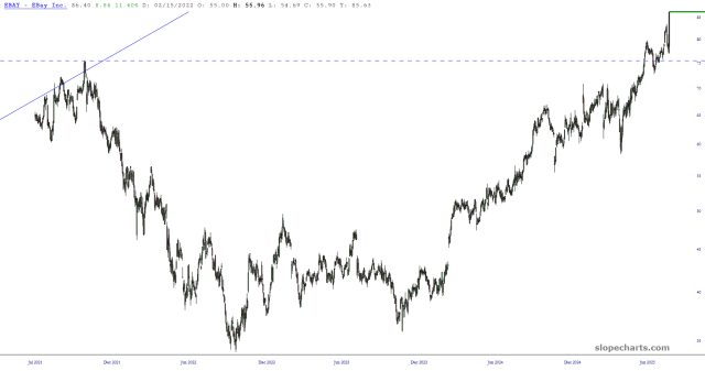 It’s a big night for tech stocks, as META and MSFT simply burn it up, blasting to lifetime highs. One “old school” company that’s also rocking the free world is eBay (fun fact my roommate from college told me about his friend’s new idea for an auction site back in the day; little did I know).