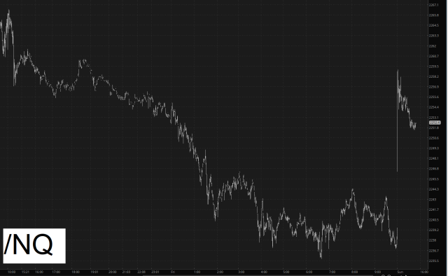 I was confused, though, because the net price changes all show as negative, but after a few moments I realized that, for some stupid reason the quote provider is pretending that Friday’s holiday trading doesn’t count. Thus, we are simultaneously up (since we gapped higher from Friday’s close) but also down (since the net change from Thursday’s close is, in fact, negative).