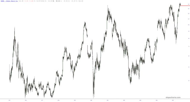 I had forgotten Shake Shack was a public company, but RNeo mentioned it as a downgrade this morning, so I decided to take a peek. Good Lord!