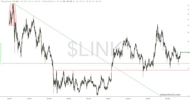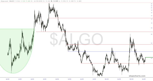 Having said that, I thumbed through ninety different crypto charts that I follow, and I found five for you that I thought you’d find interesting. They all seem fairly well-poised to follow on the heels off a $BTC ascent, in case such were to transpire.