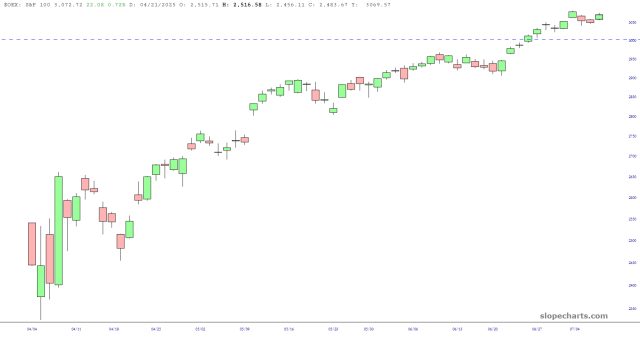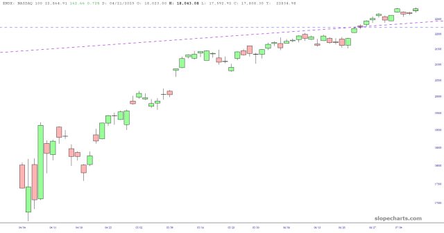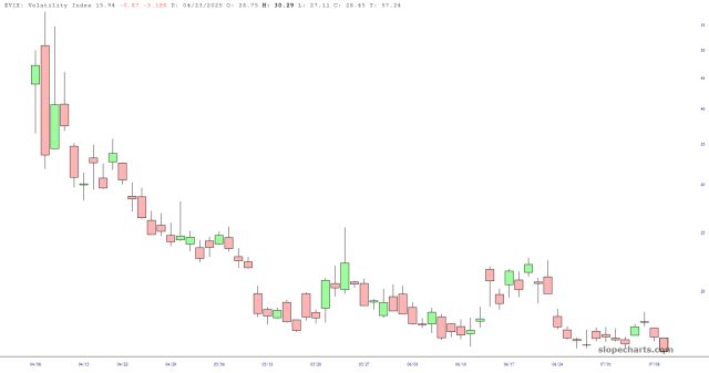 During all of this, naturally, volatility has shrunk away to a quarter of its level early in April. Indeed, we have a 15-handle on the VIX for the first time since February!