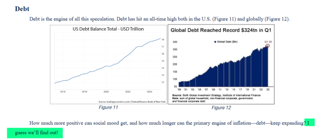 Our boys in Gainesville has finally cracked. After predicting the end of the world for eons, they’ve resigned themselves to just observing market extremes, slack-jawed, without offering any insights into when it’ll stop, how, or at what level. I just went through the latest Theorist (which only comes out once a month, so there’s tons of time to prepare), and it was nothing more than some folks in a car passing an accident, slack-jawed and astonished.