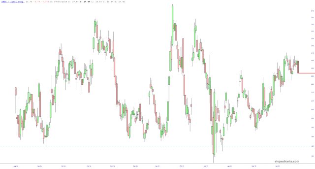 For a solid year, INTC has been banging around a tight little range in the middle 20s. I daresay tonight’s report will be a snooze-fest, but we shall soon see!