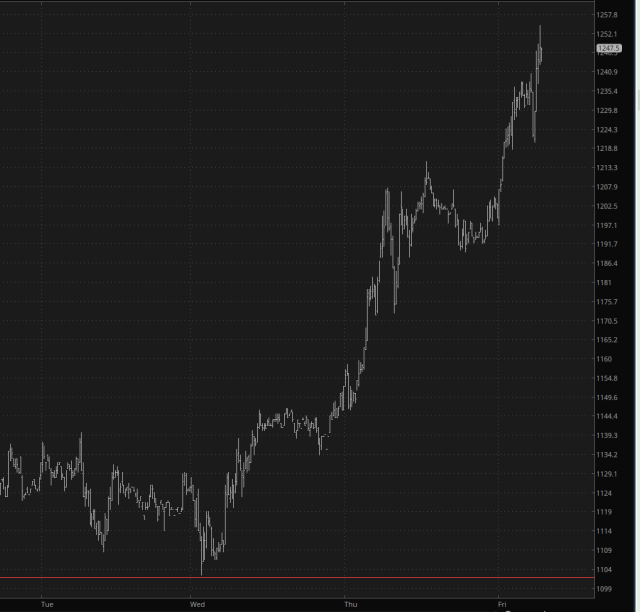 The Bitcoin chart looks very similar to both silver and palladium for the simple fact that the US dollar is rapidly becoming one-ply toilet paper. I personally will remain much fonder of assets I can hold in my hand and whose password I can’t lose. There’s a lot of excitement about $BTC since it’s up about $10,000 in just a couple of days, but don’t get too carried away by the nominal price. It’s a six-figure asset, after all. The fact is that palladium has, percentage wise, had a much better week.