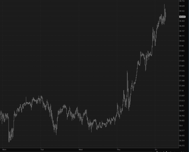 Still, red is red, and my surviving dozen short positions should all have good opens. As for what I’m bullish on, those are having a great time. Silver, which I haven’t written about much lately, is zipping toward $40.