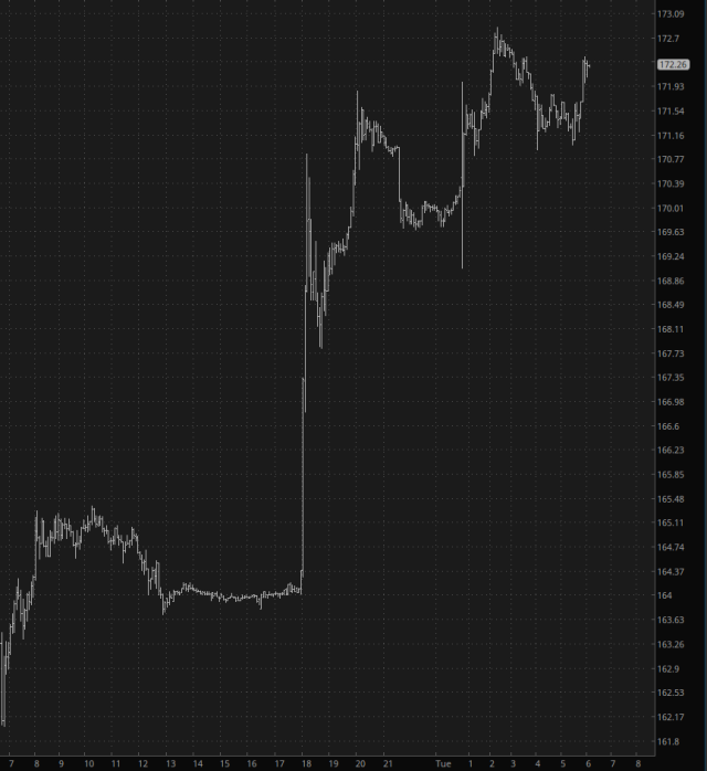 In a way, the bigger news than CPI is what happened with Nvidia. Trump has TACO’d yet again, as he does on a daily basis, and has changed his mind on restricting NVDA chips to China. In light of this good news for shareholders, NVDA is ripping to yet another lifetime high. I suppose it won’t be long before people are watching this to become a $5 trillion company.