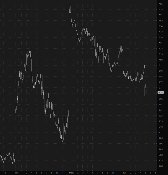 The only meaningful drop in any of the futures is with Bitcoin, and it was kind of easy to see this coming. The reason? Arrogance. The amount of high-flying, told-you-so-ing, and unchecked optimism among this crowd was just screaming for a reversal, so this sucker did a hard U-turn and has burned off the $6,000 pop it enjoyed recently. The /BTC is back to where it was Thursday.