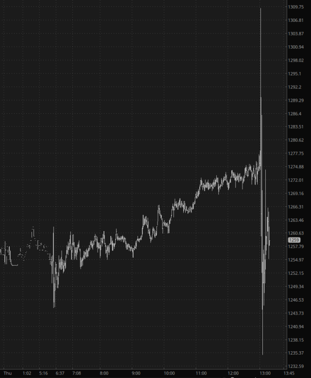 UPDATE: Earnings are out, and the stock is down a little. This chart looks very dramatic, but this is a very small, boring move, all things considered. Options sellers were the winners here.