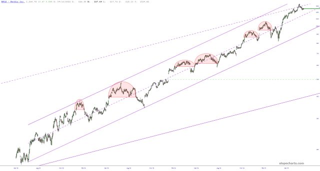 The recent price history of this stock has been defined by a multi-year ascending channel. It’s a smooth sailor, and I have no position.