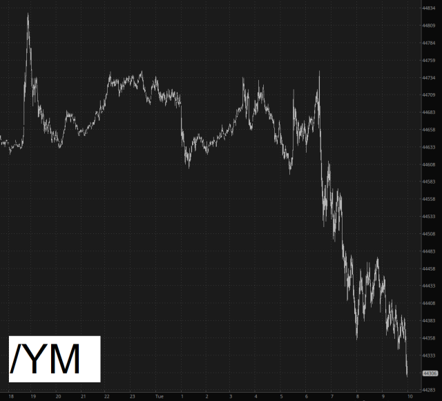 The Dow Industrials is down nearly a percentage point, which these days is equal to an historic crash.