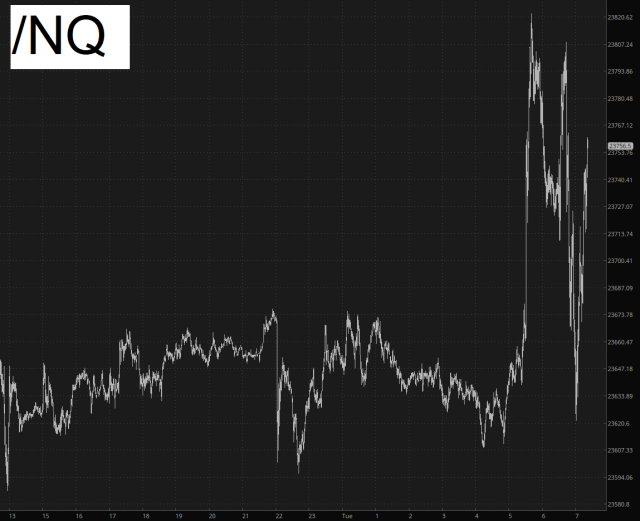 Although there’s no doubt that the bulls are absolutely stomping the bears this morning, the movement so far isn’t exactly definitive. Incredibly, the /NQ actually went red briefly during all the gyrations following the mild CPI report. As of this moment, the /ES and /NQ are both up half a percent while the small caps are up more strongly at one and two thirds percent.